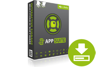 Die AppSuite wird als native Standard Windows-Software auf einem PC / Mediaplayer installiert. Einmal gestartet, arbeitet die AppSuite als Mini-Betriebssystem und zentrale Content Management Software für jedes beliebige Touchscreen-System. Sie können beispielsweise neue Apps herunterladen, Updates installieren, eigene Projekte verwalten, und vieles mehr.